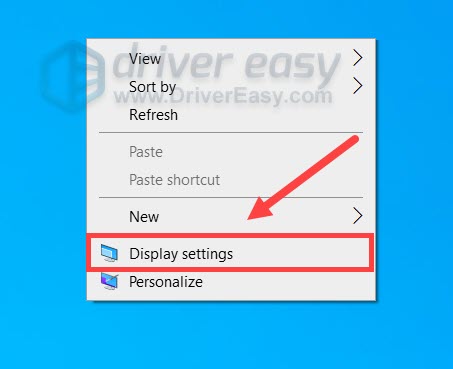 1. In the empty area of your desktop, right-click and select Display settings.