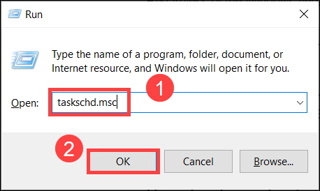 3. On your keyboard, press Win+R to invoke the Run box. Type or paste taskchd.msc and click OK.