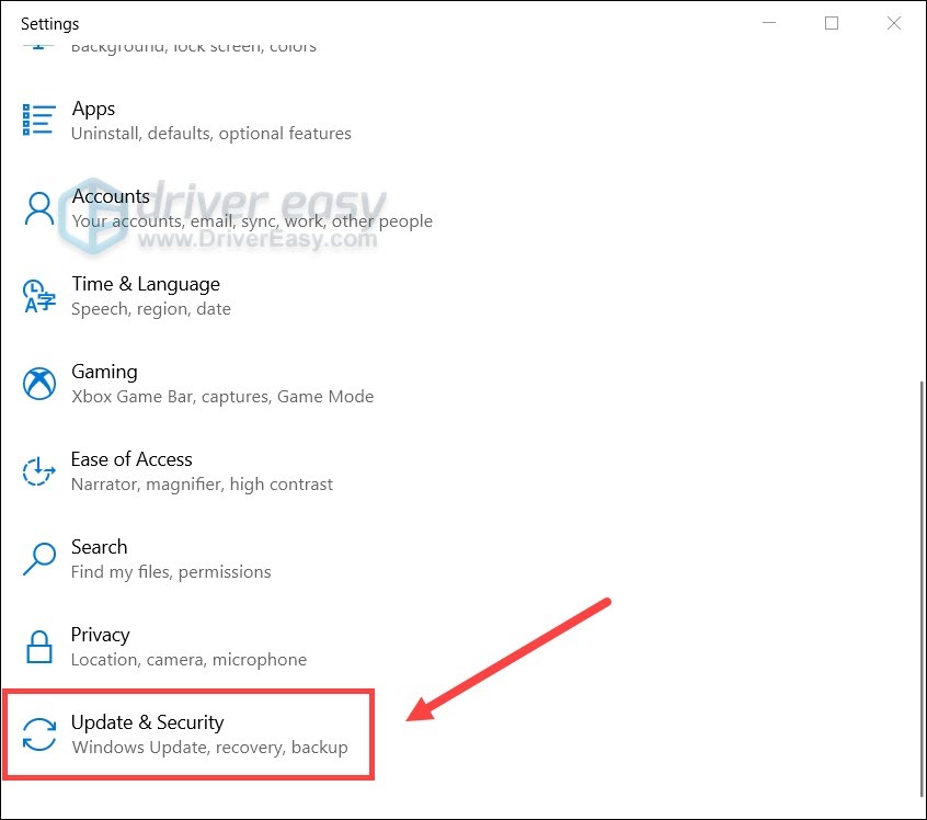 2. Scroll down and select Update & Security.
