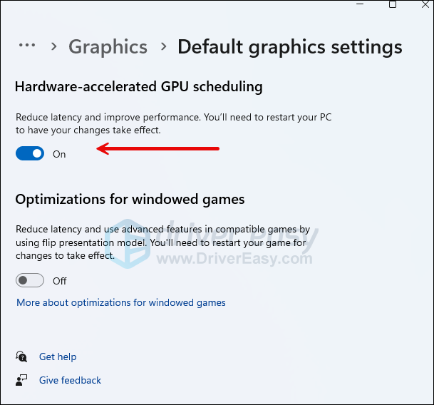 4. Turn on Hardware-accelerated GPU scheduling.