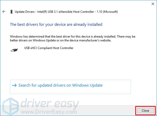 3. Click Close when Windows tells you that the best drivers for your device are already installed.