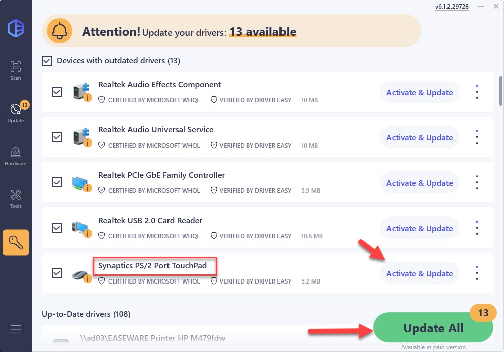 Way 2: Update Synaptics Touchpad Driver automatically — Easy & Quick