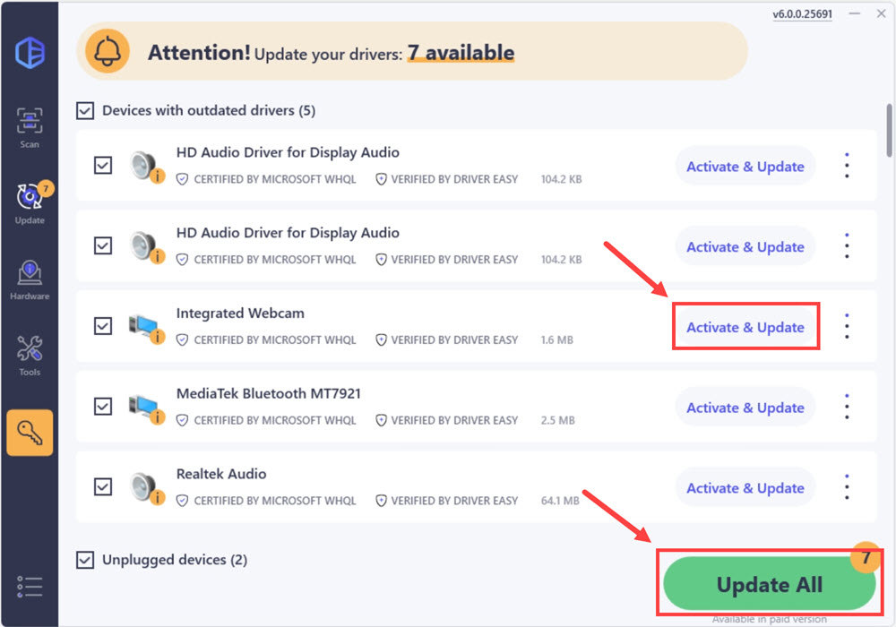 (You’ll be prompted to upgrade when you click Update All. If you are not sure whether Driver Easy is right for you, our free trial version lets you try out the full features of the Pro version for 7 days. You won’t be charged before your trial ends.)