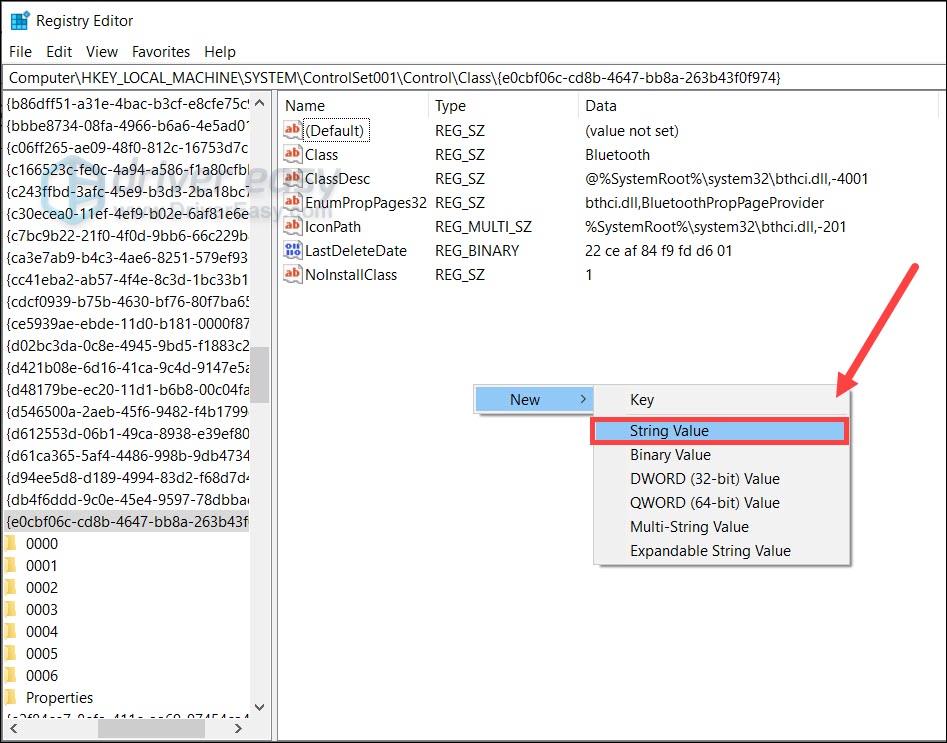 3. At the empty area, right-click and move your cursor to New to expand the list. Select String Value.