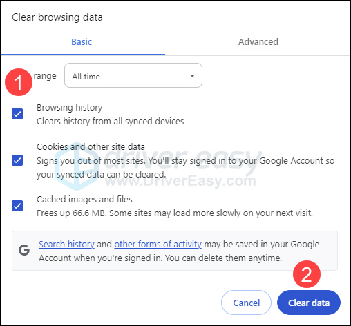 At the sight of Fix 3, you may wonder why clearing cache and cookies can solve this problem. Sounds a bit weird, but it does have something to do with your passwords-not-saving issue – this is possibly because the overload of cache has interfered with the normal functioning of your Chrome password manager.