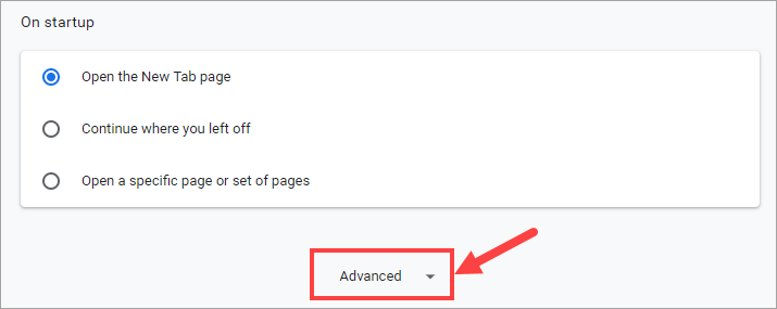 2) On the pop-up page, scroll down to the bottom and click Advanced.