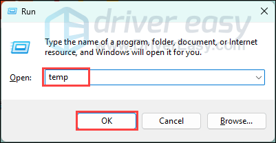 1) On your keyboard, press Windows key and R at the same time, then in the Run form, type temp and hit Enter. This will invoke Windows Explorer with your Temp folder open, showing you all the temp files on your computer.