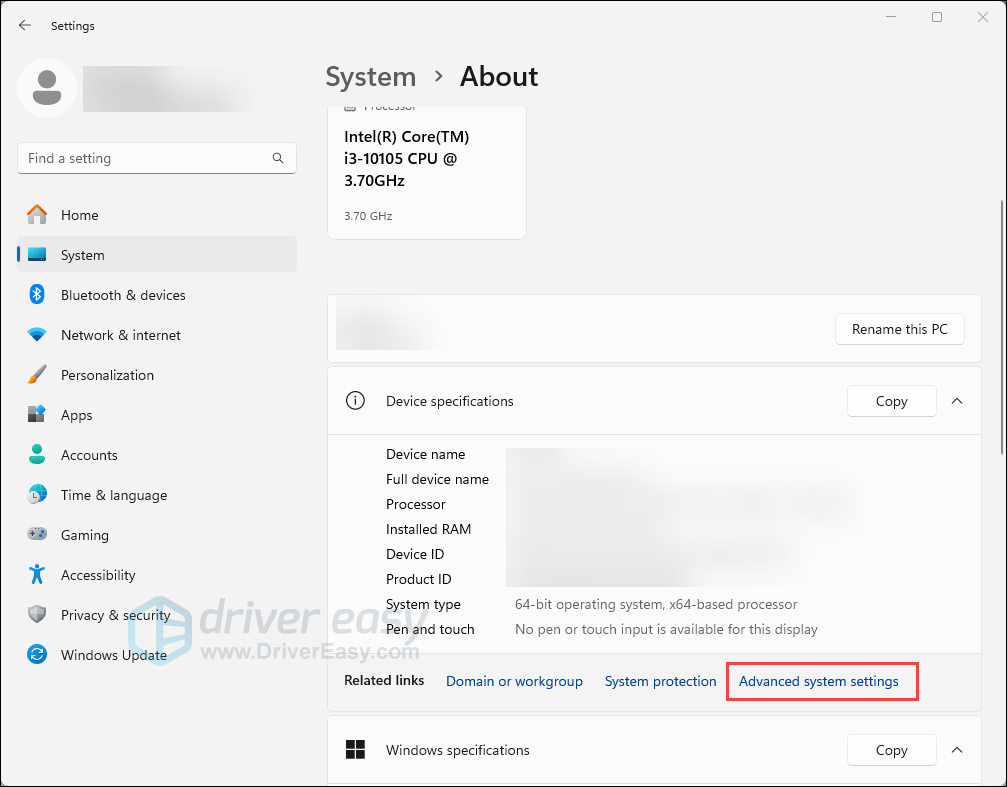 1) On your keyboard, press the Windows key and I key at the same time. Then click System and About.