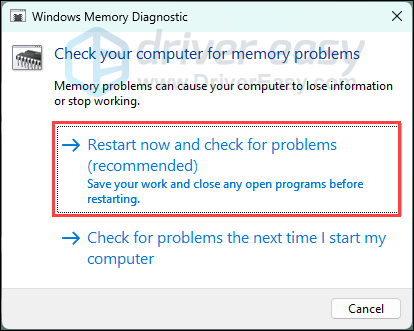 2) If you want to check for problems immediately, click Restart now and check for problems(recommended). If you want to check later, click Check for problems the next time I start my computer.