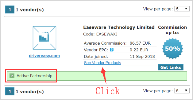 4) Click See Vendor Products (under “Easeware Technology Limited” in the Vendors tab).