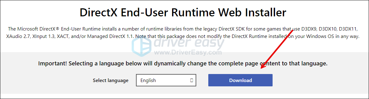 Then download DirectX Redist from here: https://www.microsoft.com/en-us/download/details.aspx?id=8109. After the download, double-click the downloaded file and extract it to wherever you prefer. When the file is extracted, double-click the DXSetup file to run the DirectX files installation.