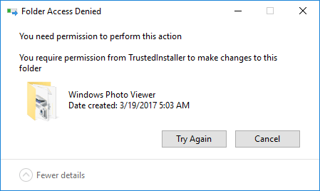 You require permission from TrustedInstaller to make changes to this folder.” Looks like you still don’t have the final say on your operating system.
