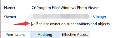 Replace owner on subcontainers and objects if you want to apply the ownership changes to all the subfolders and files. Then hit