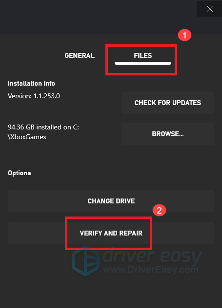 - Click the Files tab > Verify and Repair to repair the game. Then try to launch it again.