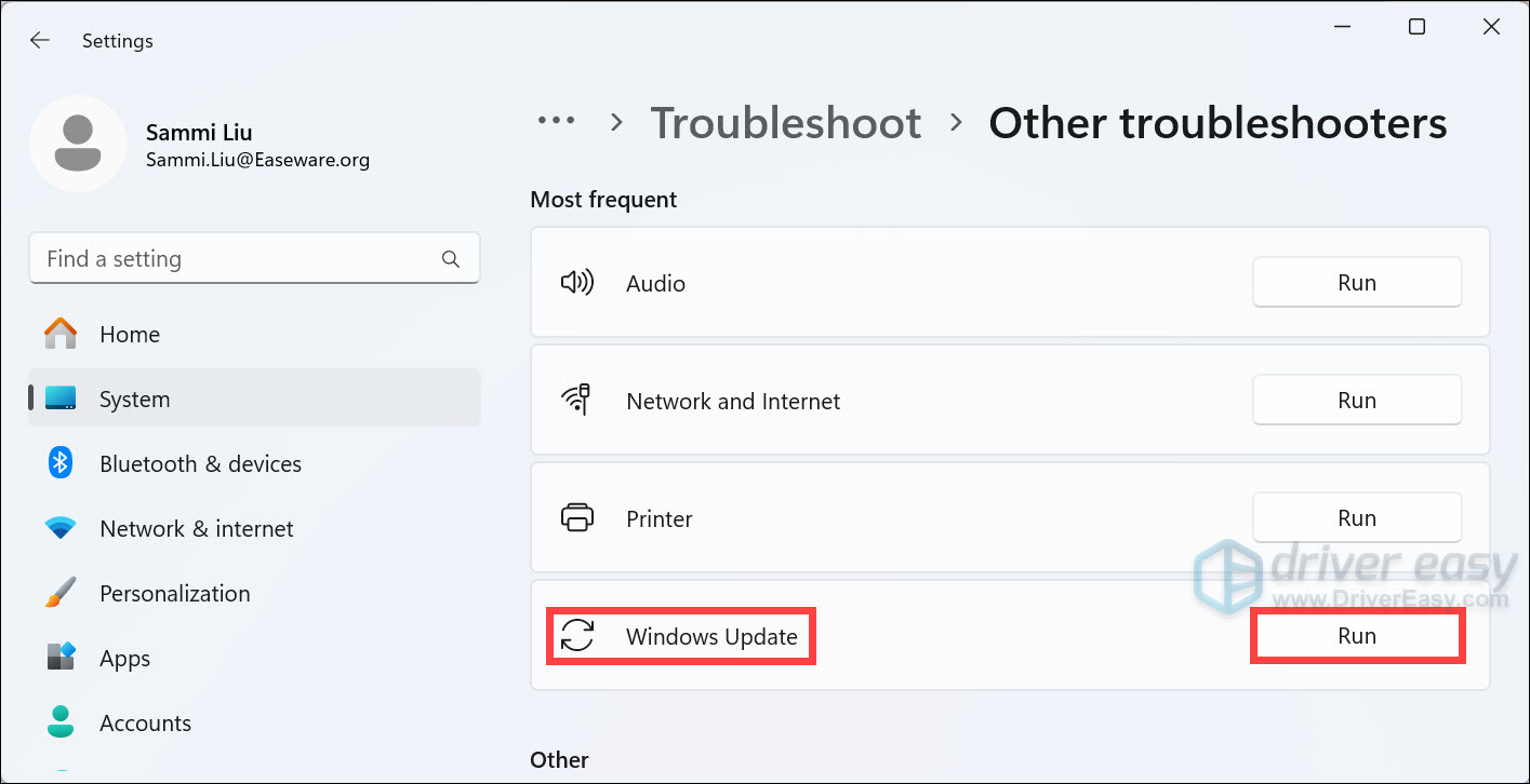 - Click Other troubleshooters.