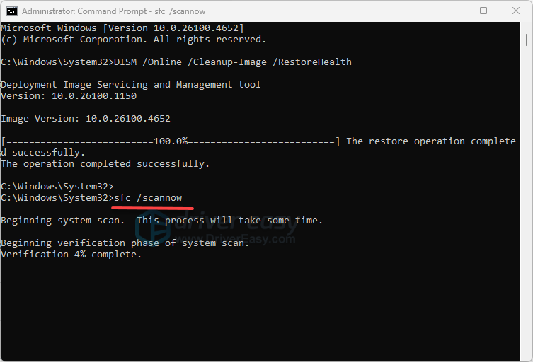 This may take some time. After the DISM is complete, type:sfc /scannow