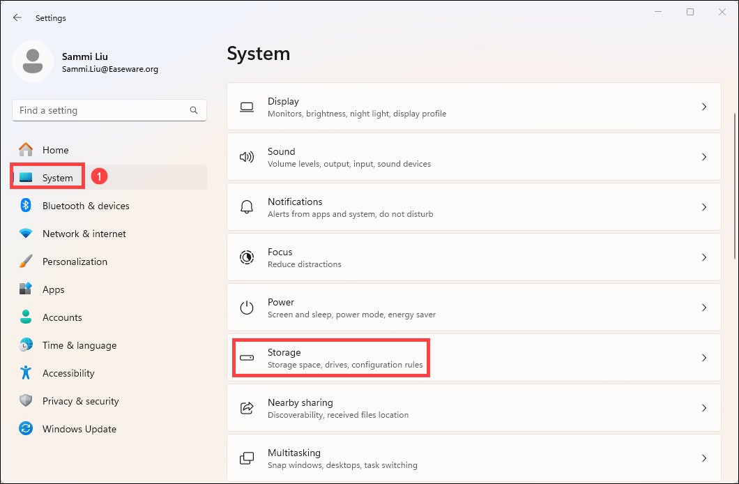 - Go to System > Storage.