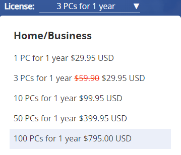 Currently, we provide 5 options for Home / Business users. For more information, please visit our pricing page.