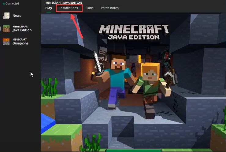 - Open the Minecraft launcher. Then, click the Installations tab at the top.