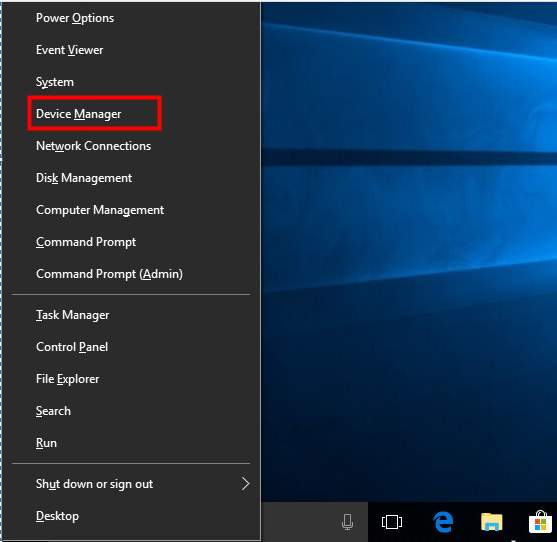 1. Open Windows 10 Device Manager by pressing Win+X (the Windows logo key