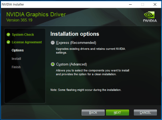 The driver will be installed in Express way by default. In this way, all components in the whole driver package will be installed. If you just need to install HD audio drivers and not the whole driver package, choose Custom Install and uncheck the other optional driver packages.
