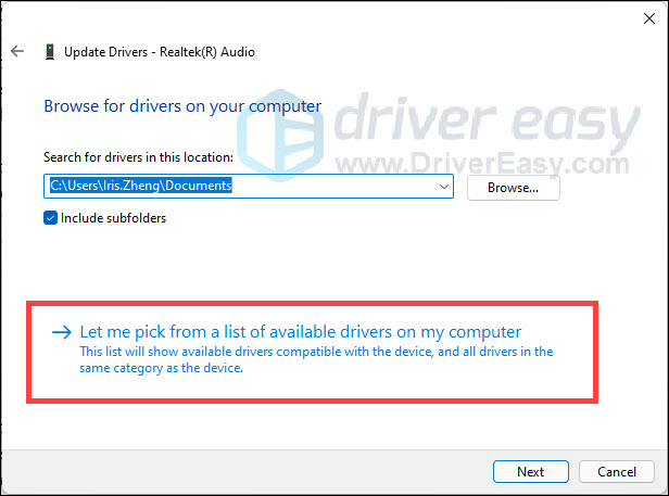 - Click Let me pick from a list of available drivers on my computer.