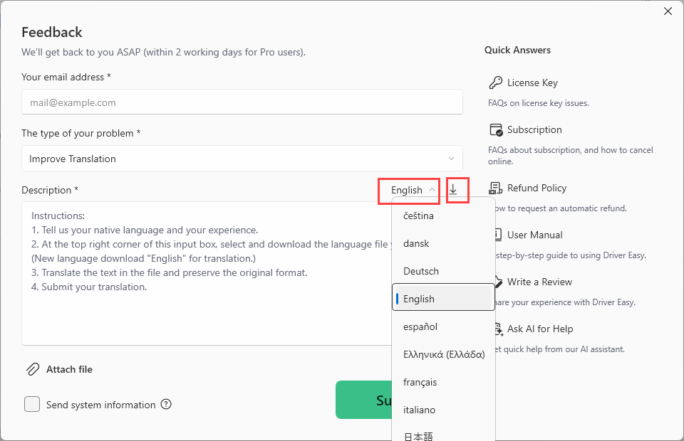 Additionally, we’re currently planning to translate Driver Easy into any additional languages. And we welcome any contribution from our users.