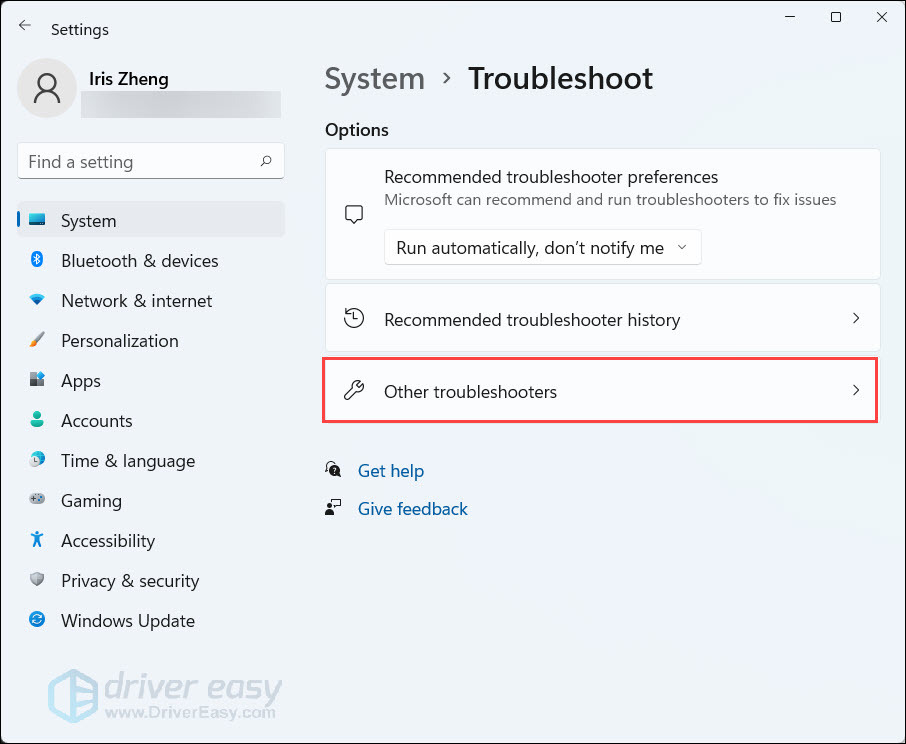 - Click Other troubleshooters.