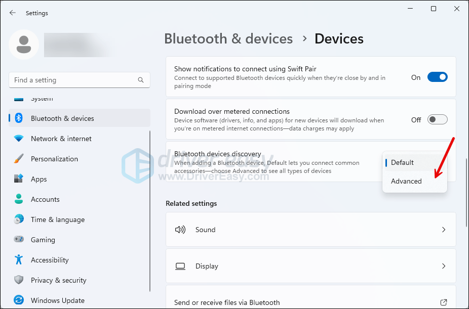 As per quite some Reddit readers, setting the Bluetooth devices discovery setting to Advanced helps to fix the Bluetooth not working problem on their Windows 11 computers. To see if this does the trick for you as well: