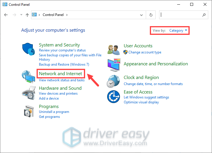 - View by Category, and select Network and Internet.
