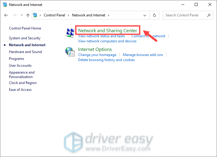 . - Select Network and Sharing Center.