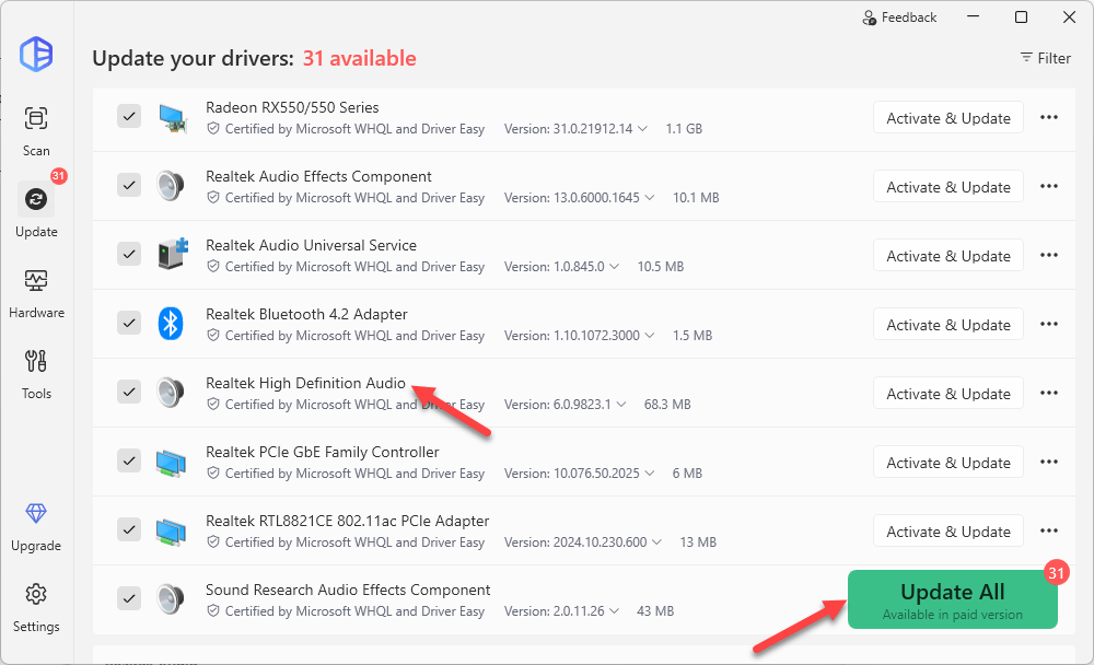 Driver Easy simplifies the process of updating all your drivers safely and automatically with just a few mouse clicks. Here’s how you can do it:​