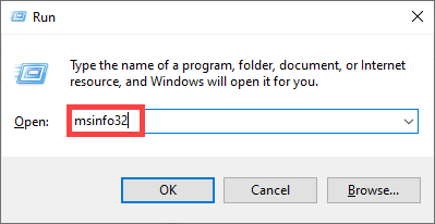 1. On your keyboard, press the Windows logo key + R to open the Run box. Type msinfo32 and hit Enter. This will open the System Information window.