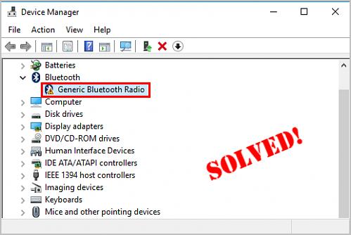 If you see Generic Bluetooth Radio with a yellow exclamation mark in Device Manager, the Bluetooth feature probably won’t work on your computer. But don’t worry – you can easily fix it by updating your Bluetooth driver.