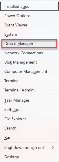 - On your keyboard, press the Windows logo key and X at the same time, then select Device Manager.