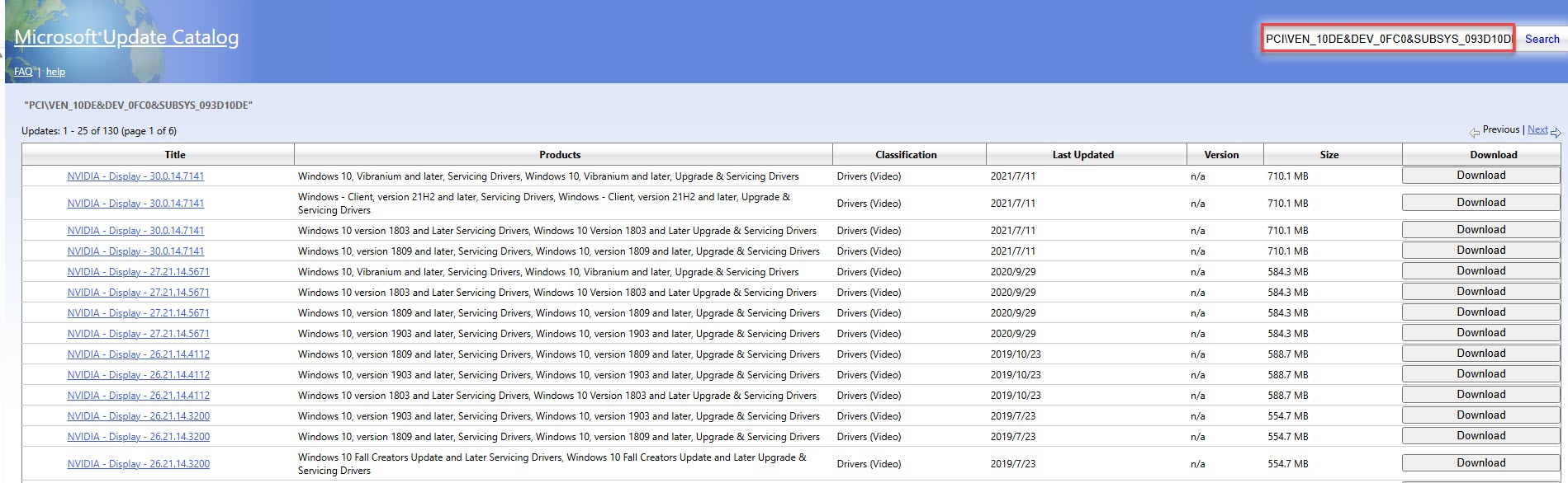 Tip: If you can’t find a matching driver in the Microsoft Update Catalog: