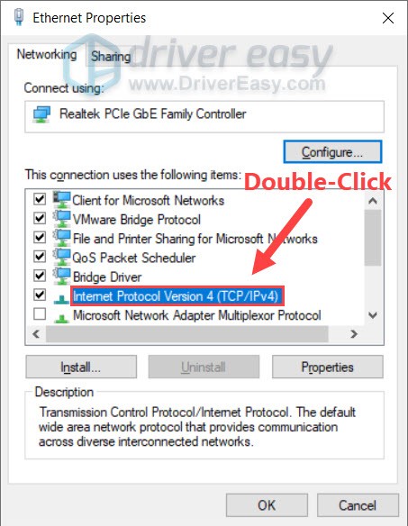 - Double-click Internet Protocol Version 4(TCP/IPv4) to view its properties.