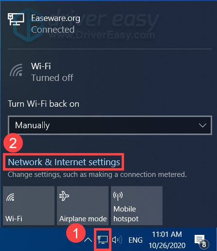 - At the bottom right corner of your screen, click the computer icon and select Network & Internet settings.