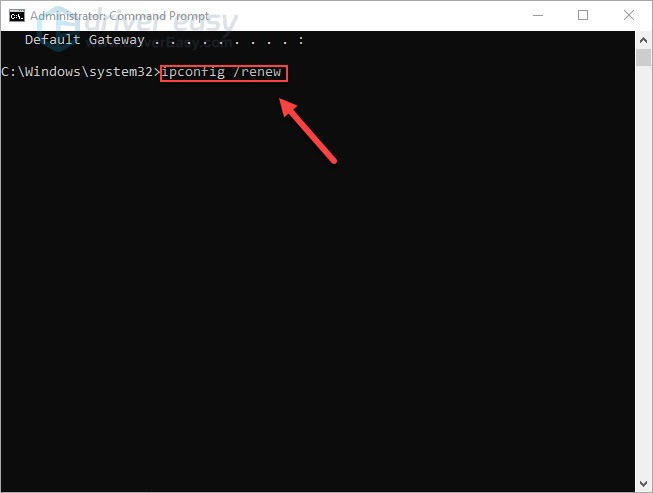 4) Type ipconfig /renew, and then press the Enter key on your keyboard.