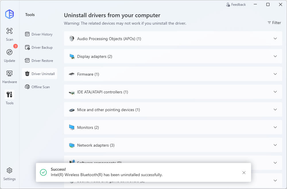 2. Click Driver Uninstall. Select the driver you’re going to uninstall and click Uninstall.