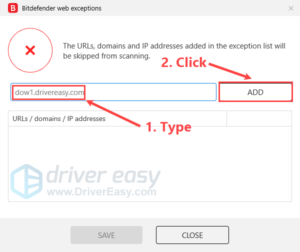2) Type dow1.drivereasy.com in the box and click ADD.