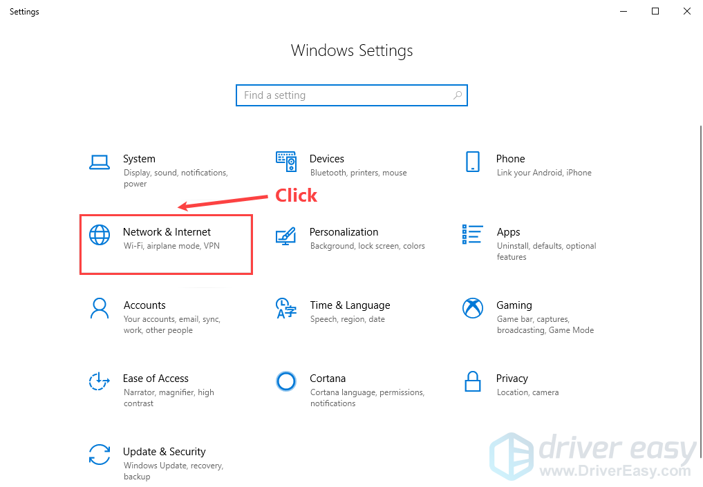 1) On your keyboard, press the Windows logo key and I at the same time to open the Windows Settings. Then click Network & Internet.