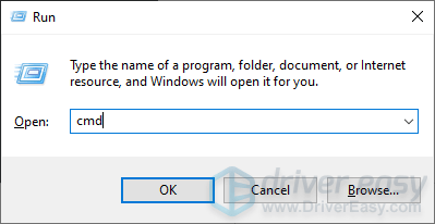 1) On your keyboard, press the Windows logo key and R at the same time to open the Run dialog. Type cmd and press Enter to open Command Prompt.