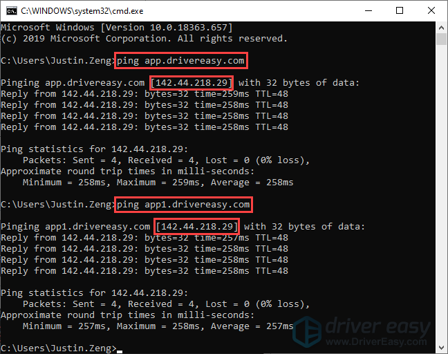 If steps above could not help you solve the problem, please feel free to send feedback to us via the Driver Easy feedback tool. Please attach a screenshot of the ping check result like the following when sending feedback to us.