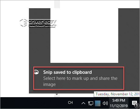 3) Once you’ve taken a screenshot, the screenshot is saved to the clipboard automatically. Click the dialog box popping up at the bottom right corner of the desktop, then the Snip & Sketch opens and shows you the taken screenshot.