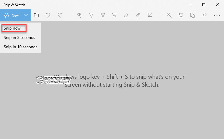 3) Click New in the toolbar and select Snip now from the drop-down list.