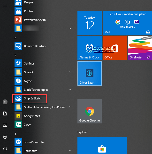 2) Scroll down and click Snip & Sketch under the “S” section.