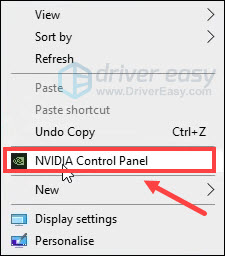 - On your desktop, right-click any empty space and select NVIDIA Control Panel.