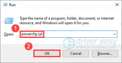- On your keyboard, press the Windows logo key and R together to invoke The Run dialog box. Then type powercfg.cpl in the field and click OK.