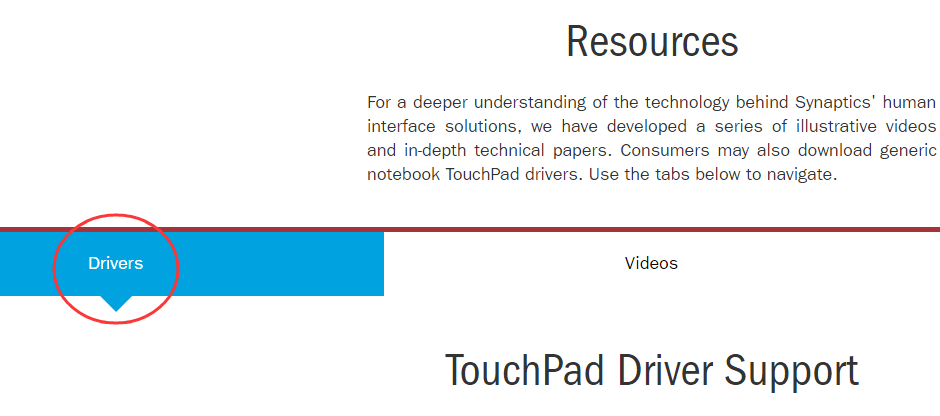 2) Scroll down, you should then see the TouchPad Driver Support under Drivers pane.